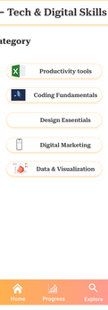 SKILLSIP is a thoughtfully designed micro-learning mobile app that delivers daily 5-minute lessons across a variety of skill categories including Cooking, Language, Personal Finance, Fitness, Tech, and Digital Skills. The idea behind the app is to make continuous learning easy, accessible, and sustainable — especially for busy individuals who struggle to find time for long-format courses.